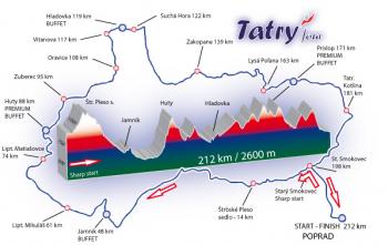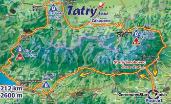 Cursa de 225 km Traseul: Poprad - Stary Smokovec - Jamnik - Huty - Zuberec - Vitanova - Hladovka - Chocholow (Polonia) - Zakopane (Polonia) - Prislop - Stary Smokovec - Poprad Harta:
