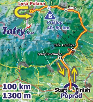 Cursa de 100 km Traseul: Poprad - Stary Smokovec - Tatr. Lominca - Zdiar - Prislop - Lysa Polana - Prislop - Stary Smokovec - Poprad Harta:
