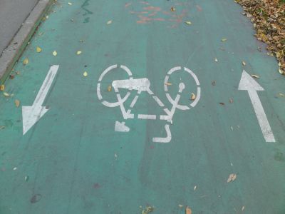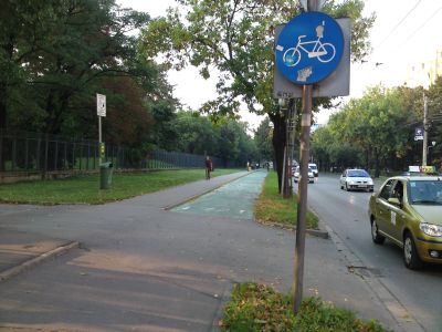 pe sensul către centrul oraşului, fiind vopsită în verde şi marcată cu simbolul unei biciclete. Permite circulaţia în ambele sensuri, de aceea