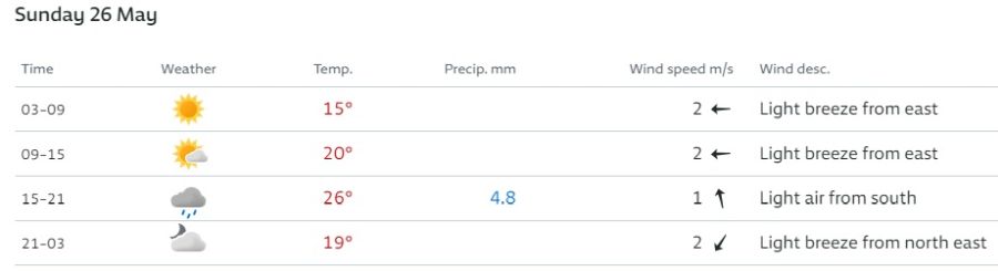 www.yr.no - actualizat la 20.05.2024)