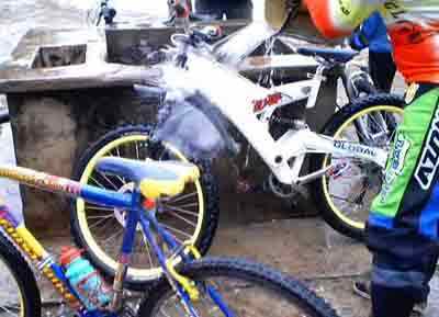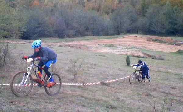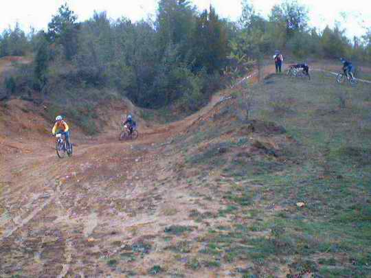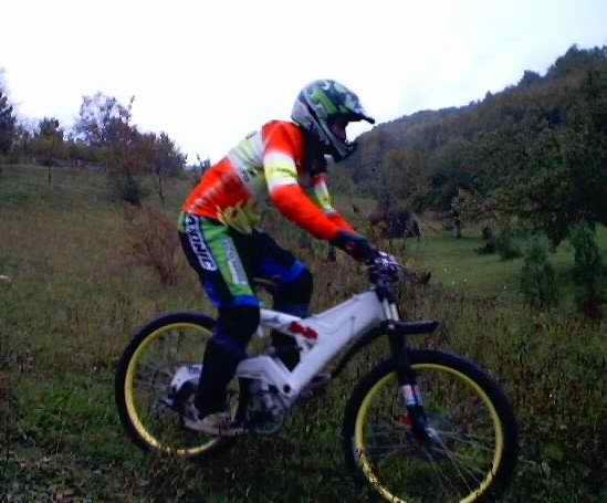 ![]() Totusi s-a aratat in sfarsit vreme buna, asa ca fain frumos ne-am pus pe caii putere ai masinii si am mers la pestera Romanesti, unde pe un traseu de 890 m, in graba ne-am hotarat ca ar fi un loc destul de placut, abrupt, tehnic si de viteza si ca urmare, dupa ce am facut recunoasterea de traseu am "rupt-o" la vale fiecare, asa, mai pe bicicleta, mai prin tufe (iesiri in decor), mai cu cateva cazaturi meseriase mai cu cate 56 km/ora, dar in fine cei ce au cazut au avut timp sa se recupereze destul de mult, asa ca nu prea au avut ce sa regrete, atata tot ca ei ar fi vrut ca ziua sa aiba poate vreo 40 de ore, caci, sincer, nu mai vroiau sa plece de acolo. La intoarcere am reusit sa vedem mai amanuntit traseul de cross-country (deoarece vineri ploua tare, iar sambata s-a oprit) traseu ce avea sa fie "calcat" sub roti peste 18 ore (duminica la 11).